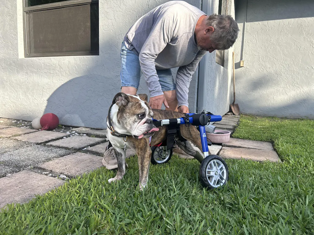 The Walkin' Wheels wheelchair is designed for easy use by both pets and owners. Setting it up is similar to using a regular harness, with the main difference being attaching the harness to the wheelchair frame, which takes just seconds.This wheelchair is also easy to transport and store. Its durable design is compact, allowing it to fit in a car or any space in your home without taking up much room.